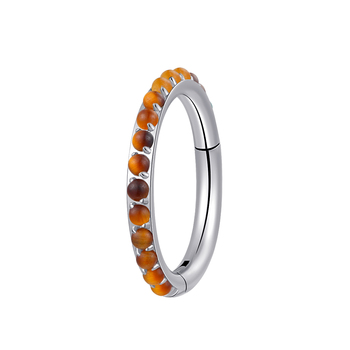 Joyería de Titanio ASTM F136 con Incrustaciones de Piedra Natural Marrón para Piercing de Tragus y Oreja, Tipo Clicker con Segmento Articulado