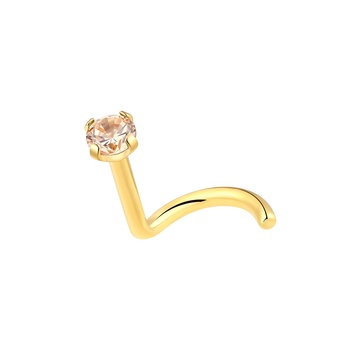 이터널 메탈 14K 솔리드 옐로우 골드 5A CZ 뱀 코 및 귀 피어싱 쥬얼리 스레드리스 푸시 인 엔드 탑