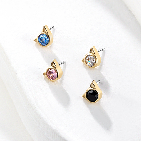 เครื่องประดับเจาะร่างกายสำหรับแมวลูกแมวแบบกดหูทำจากโลหะแข็ง14K